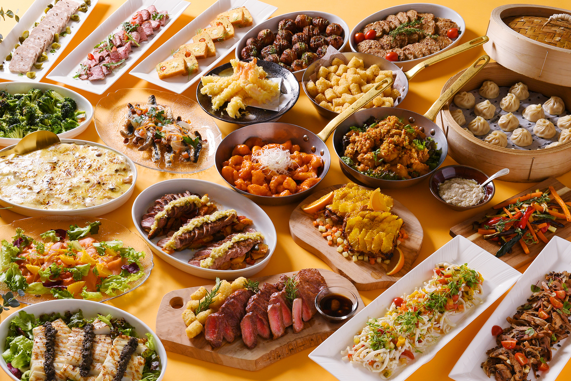 ディナー限定の “カニタワー” によるズワイガニ食べ放題、シェフが目の前で揚げる “ライブ天ぷら”、思わず写真を撮りたくなる “雪崩れるいちごのショートケーキ” など、魅力的なメニューが勢ぞろい。