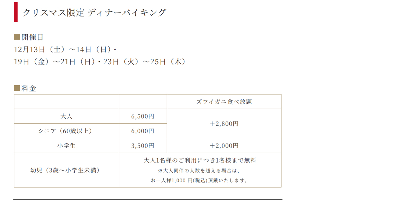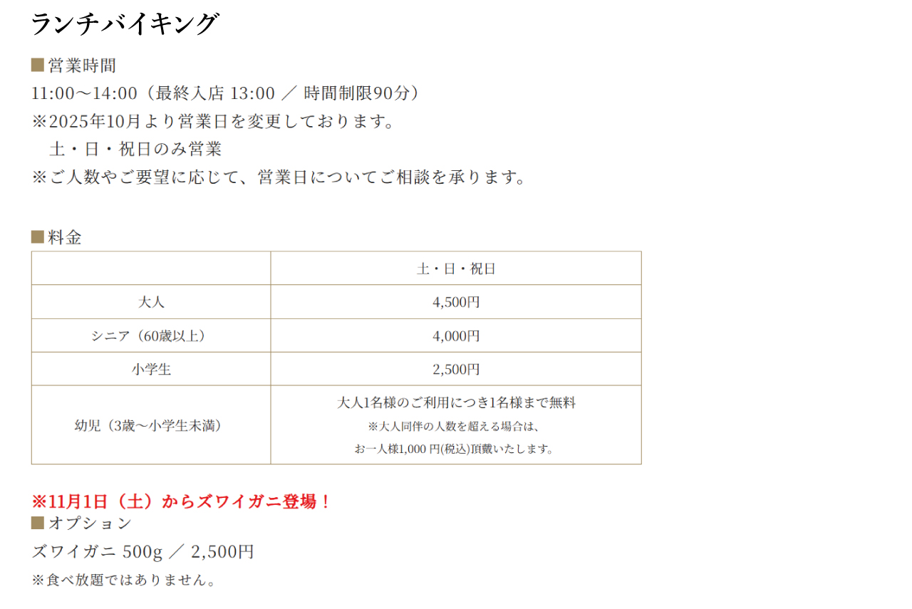 ※バイキング会場・時間は予告なく変更になる場合がございます。