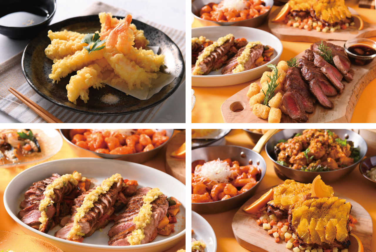 さらに、香ばしく焼き上げたビーフステーキや鴨胸肉ローストなど、冬の食卓を華やかに彩る肉料理がずらりと並びます。