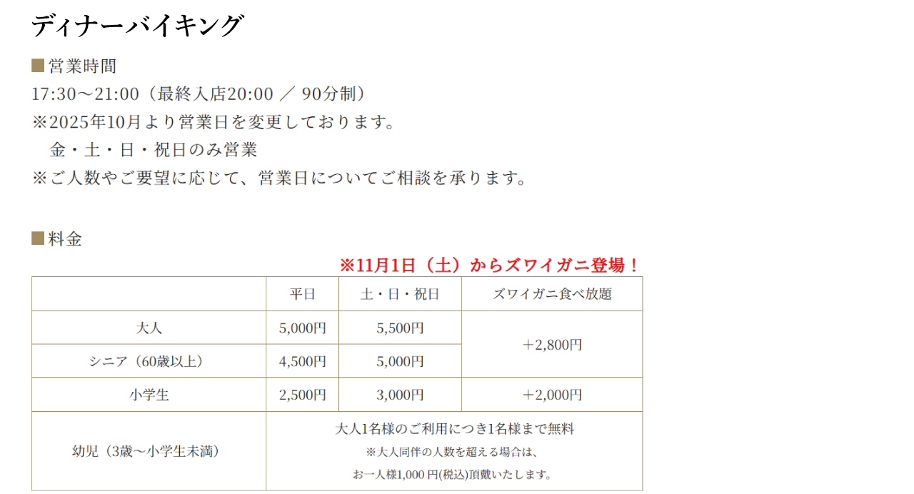 ※バイキング会場・時間は予告なく変更になる場合がございます。