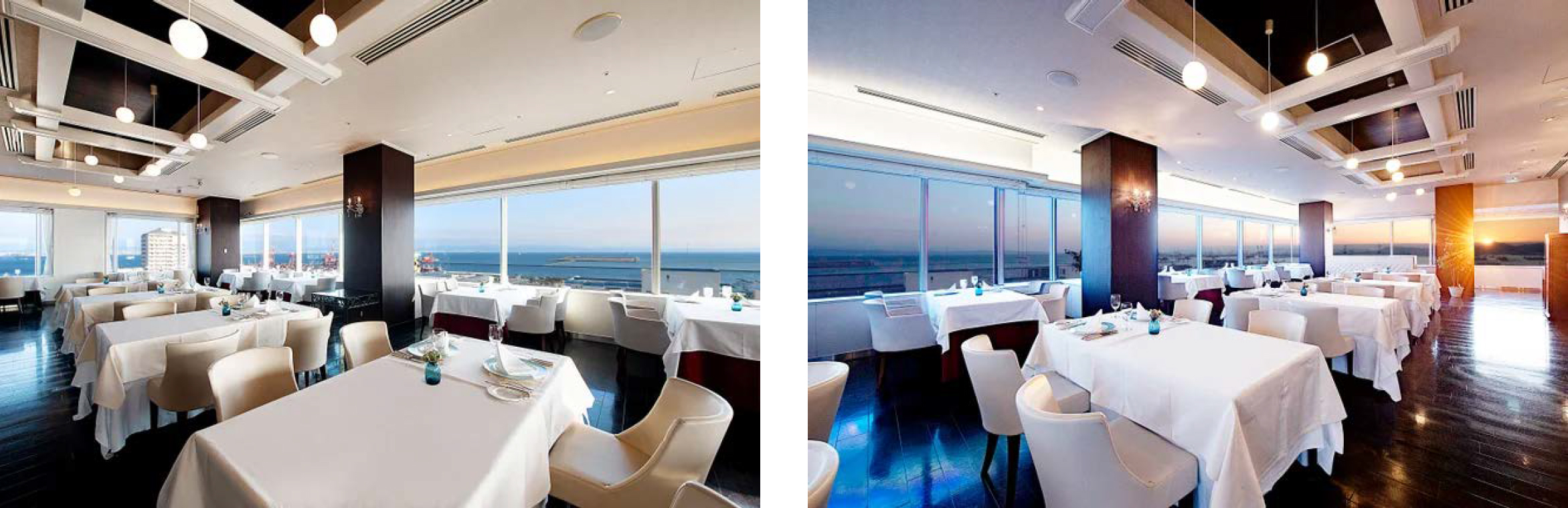 ホテルプラザ神戸最上階に位置し、海の風景を満喫できるメインダイニング。