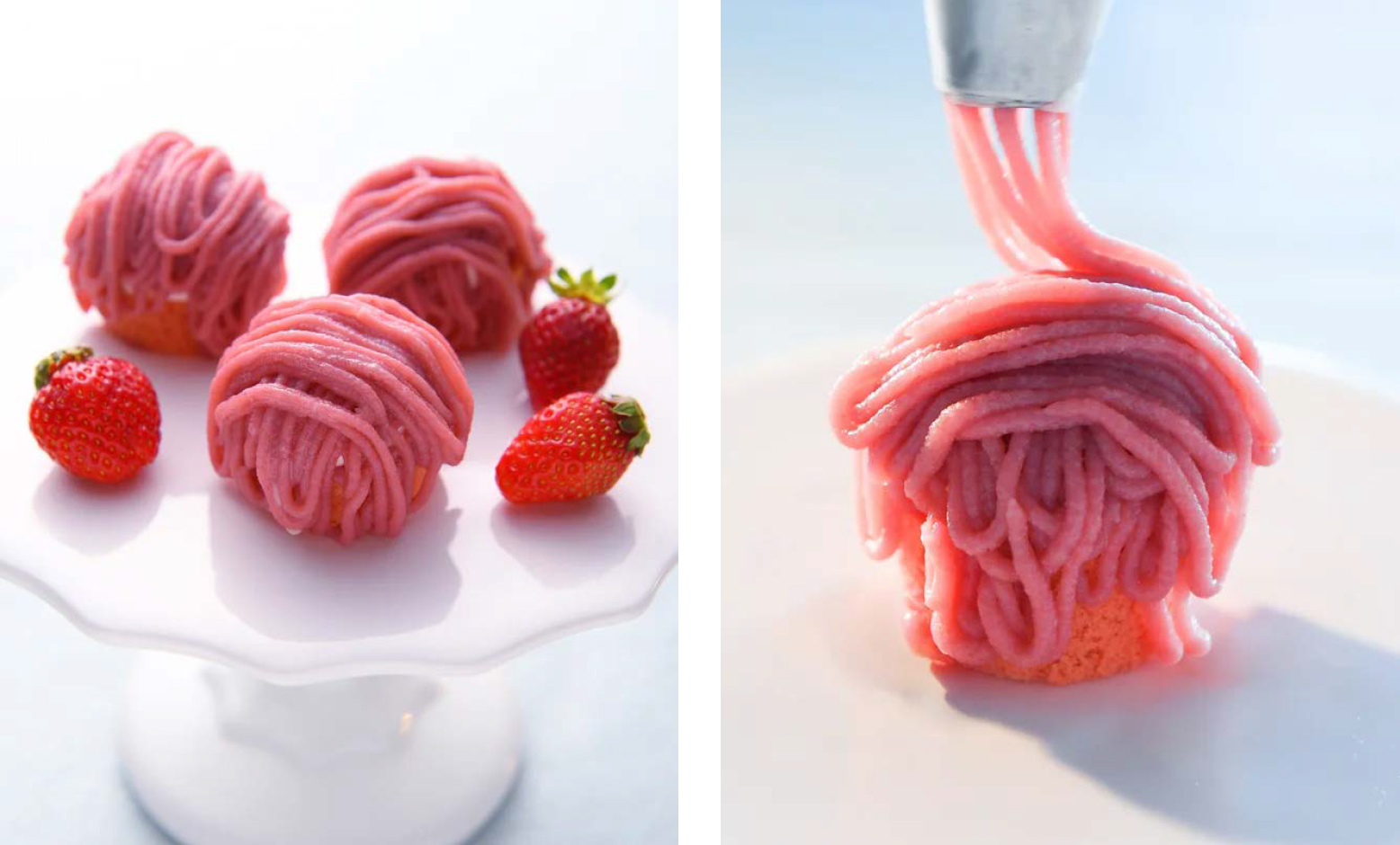 ■実演 和風いちごモンブランも、春色に染まる華やかデザート