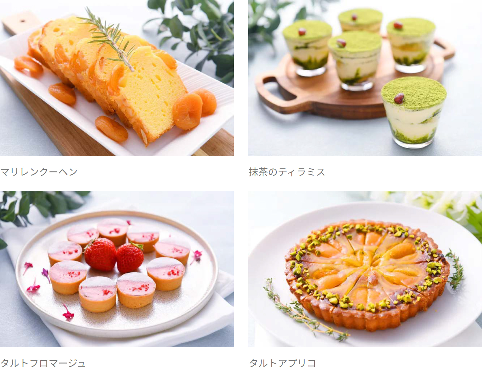 さらに、アプリコットを使ったマリレンクーヘン、抹茶のティラミスやタルトフロマージュ、ピスタチオをあしらったタルトアプリコや三色団子まで、和洋さまざまなスイーツがそろい、食後のひとときを彩ります。
