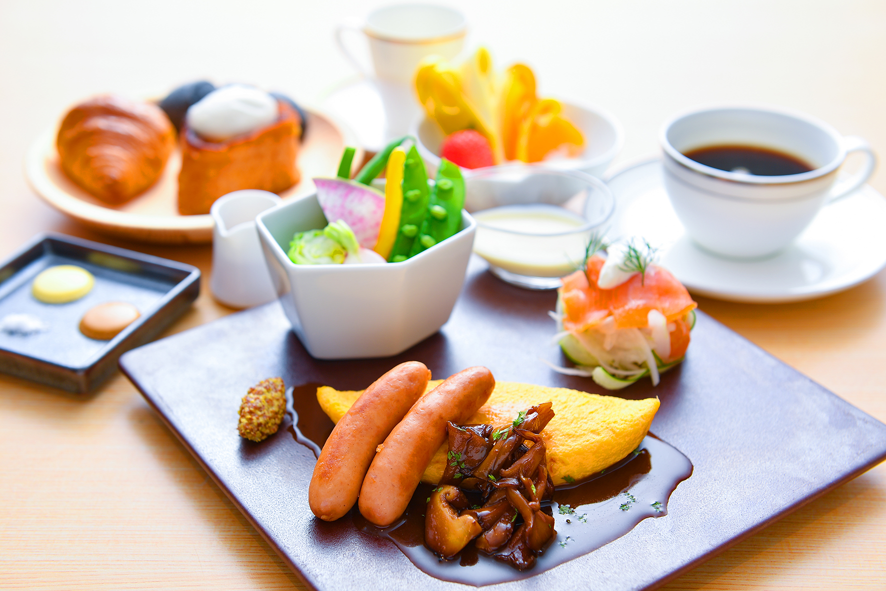 和食では、真鯛の出汁茶漬けや焼魚と奥出雲産平飼い卵の卵かけご飯など、素材にこだわったメニューを用意。洋食では、出来立てのオムレツや神戸ポークのウインナー、野菜を使用したキッシュなどを提供します。